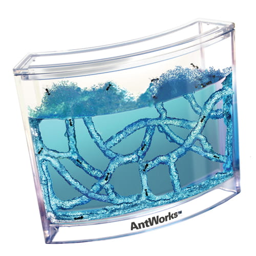 W środku ekstra wykonanego akwarium znajduje się niebieski, odżywczy i zarazem „kosmiczny” żel, w którym należy zrobić cztery otworki, które dadzą początek mrówkowym tunelom. Teraz musisz zdobyć lokatorów. W tym celu możesz udać się do najbliższego sklepu zoologicznego lub „porwać” kilka z parku. Optymalna liczba mieszkańców to 15. Mrówki odżywiają się żelem, jedyne co musisz zrobić, to zapewnić owadom odpowiednią temperaturę i nasłonecznienie. Aha i nie zapomnij raz na tydzień uchylić mrówkom wieka, aby pooddychały chwilę świeżym powietrzem.